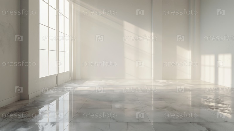 Солнечная пустая комната с мраморным полом