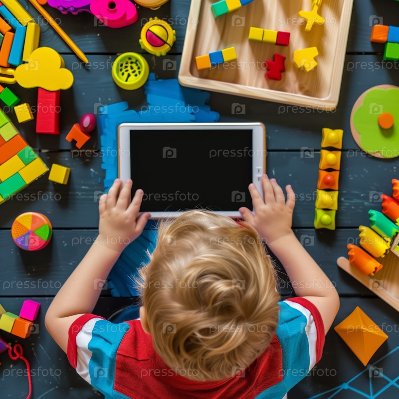 Ребенок, использующий планшет для образовательной игры