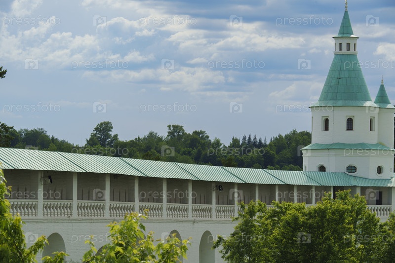 Исторический монастырь с зелеными крышами и колокольницей