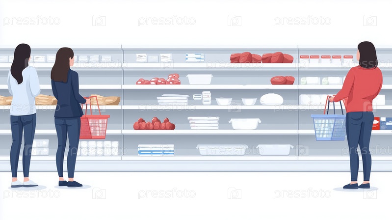 Женщины делают покупки в почти пустом продуктовом магазине иллюстрация