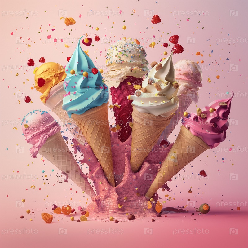 Много вкусного и красивого мороженого. летний десерт. плакат, меню