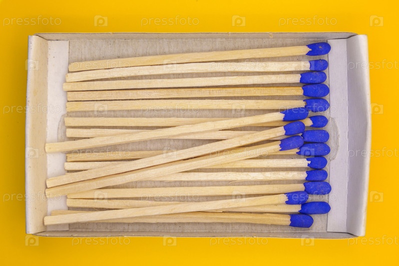 Откройте спичечную коробку с деревянными спичками и синими кончиками