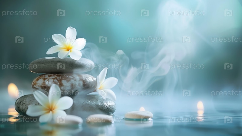 Сбалансированные камни с цветом в спокойной водной обстановке