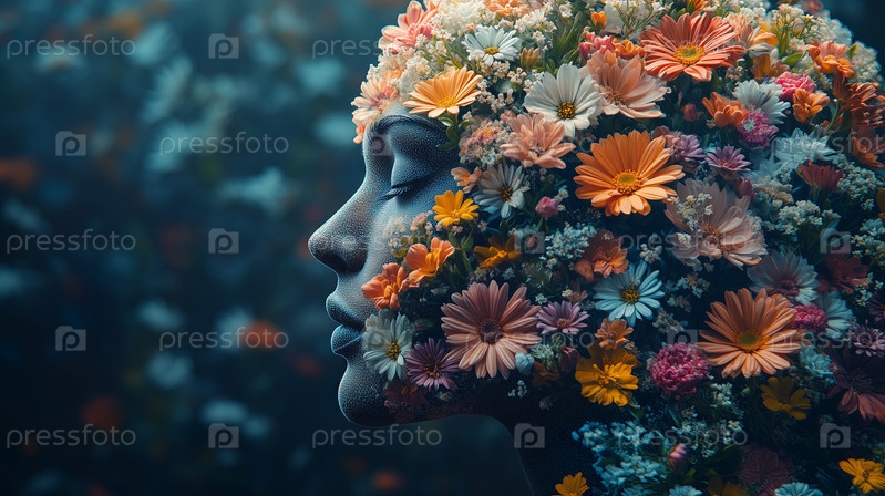 Силуэт человеческой головы с цветами в художественной композиции