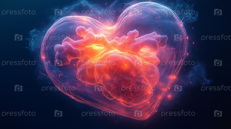Абстрактное светящееся сердце с текстурой огненных облаков