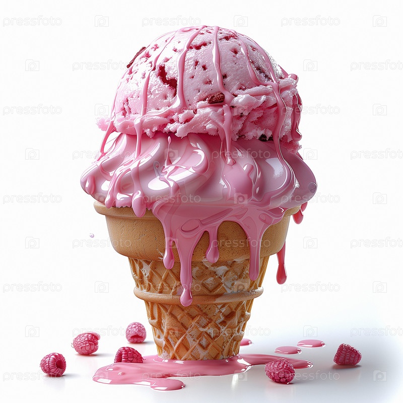 Расплавленное 3D мороженое в конусе вафли Сироп, крошки, карамель