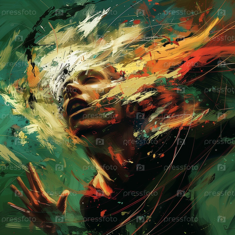 Сильные эмоции женщины, сильное отчаяние на абстрактном фоне