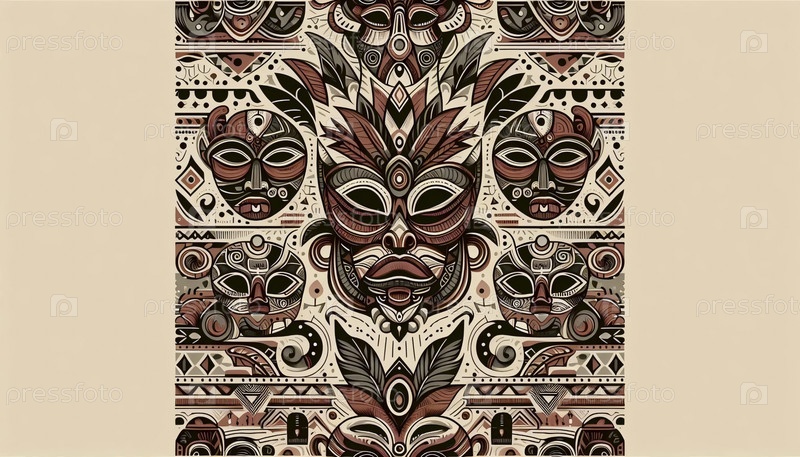 Смелая племенная маска и символ с бесшовным узором, Ai generated image