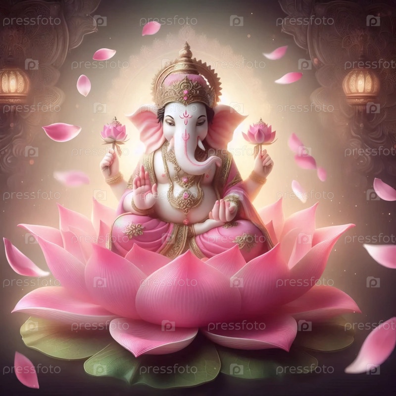 Господь Ганеша сидит на лотосе, Ай создал изображение