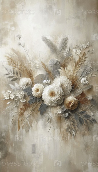 Абстрактное ботаническое стеновое искусство с нейтральным тоном, Ai generated image