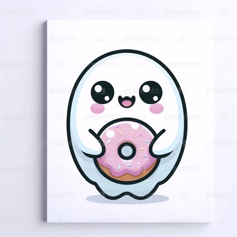Призрак кавайи с художественным принтом пончиков, Ai generated image
