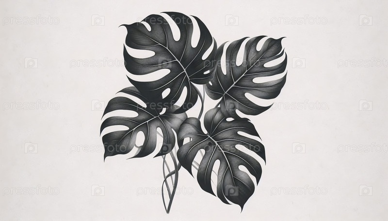 Ботаническая художественная печать линий из листьев монстров, Ai generated image