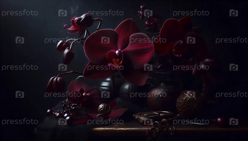 Черная орхидея в готическом стиле, Ai generated image