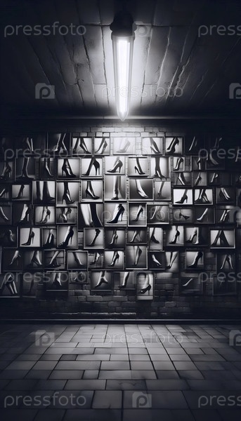 Стена доказательств детективов с фотографиями обуви, Ai generated image