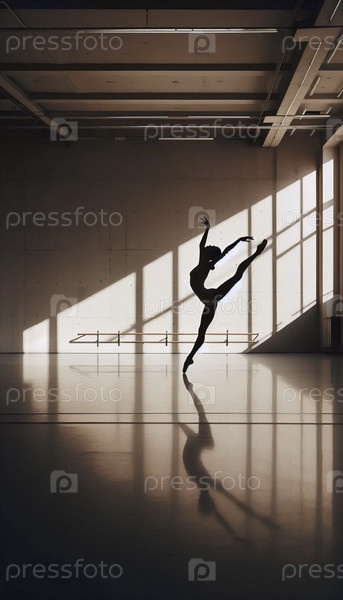 Идеальная танцевальная тень на стене тренировочного зала, Ai generated image