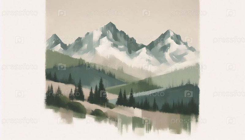 Тихий пейзаж горный принт, Ai generated image