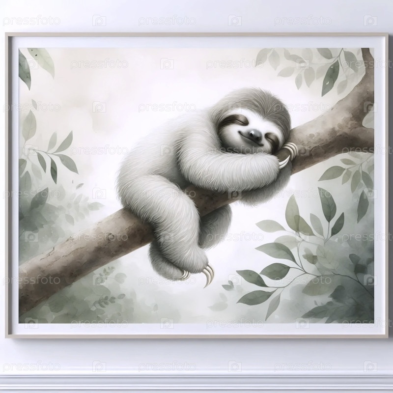 Водяной акварель детский ленивец живопись, Ai generated image A