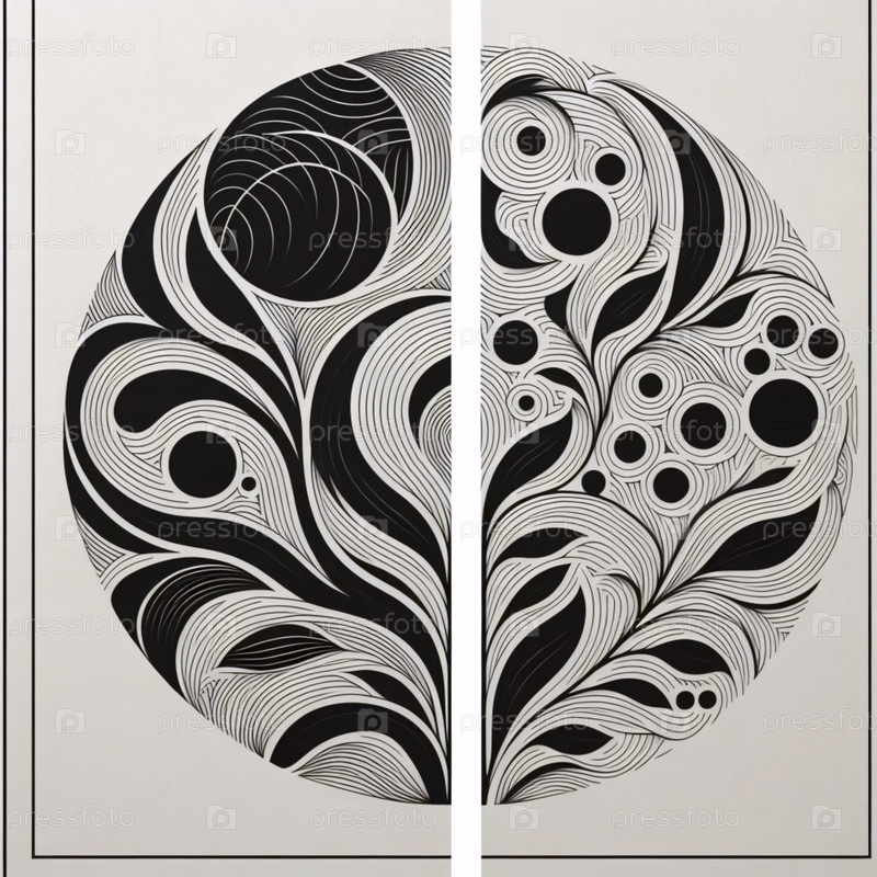 Скандинавская черно-белая абстрактная печать, Ai generated image