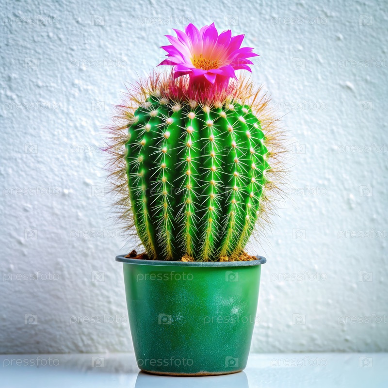 Кактус с розовым цветом в зеленом горшке. генеративный ИИ