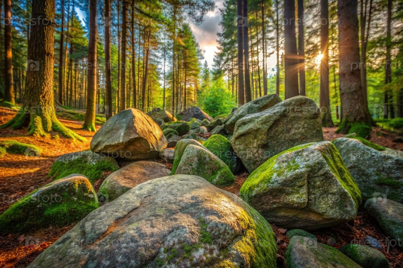 Густой лес с камнями и деревьями. генеративный ИИ