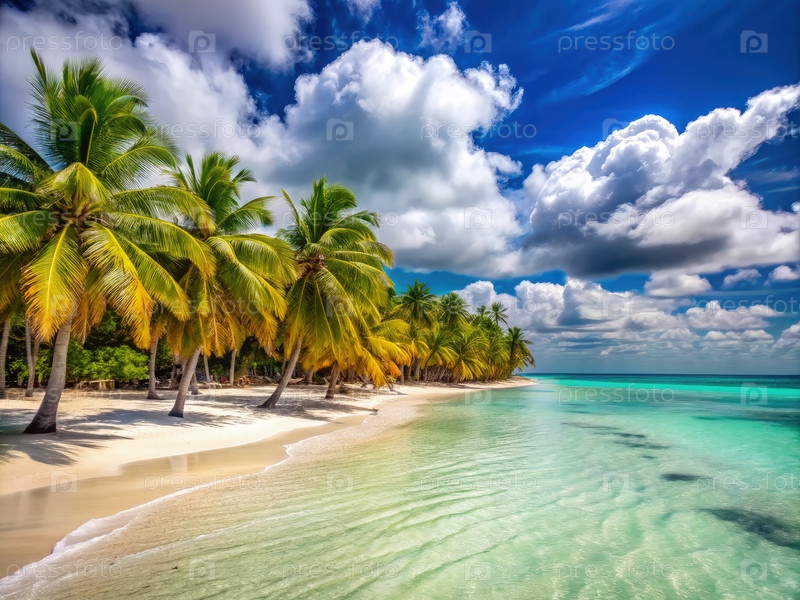 Идиллический пляж острова Саона с пальмами и чистой бирюзовой водой
