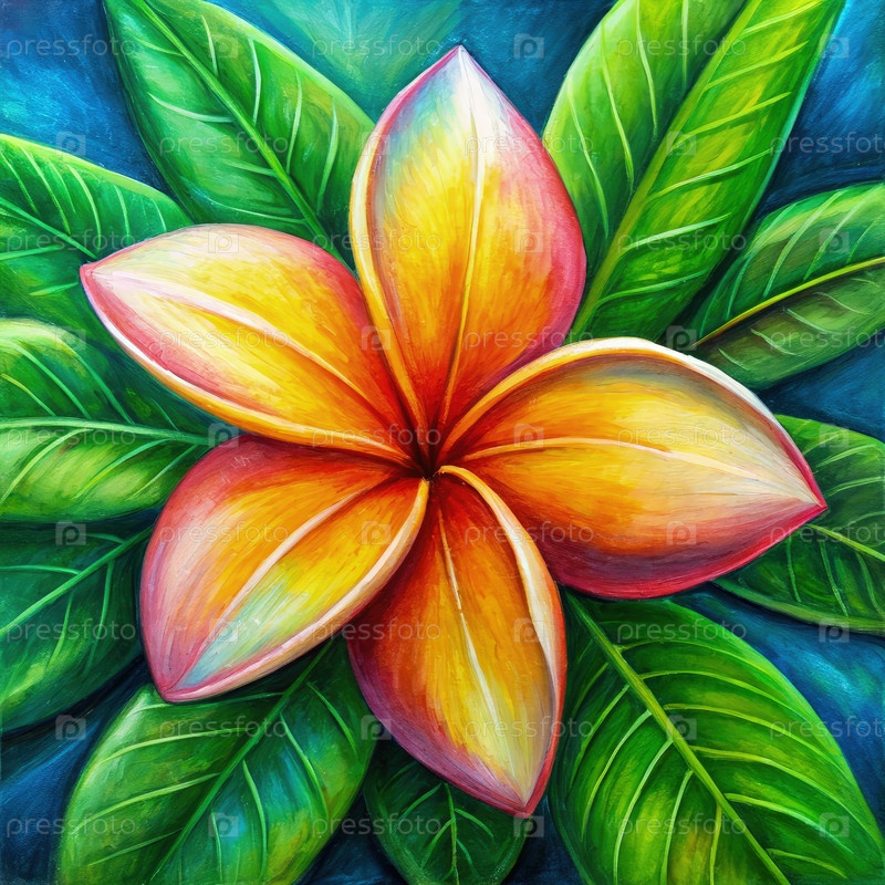 Наивная масляная живопись яркого цветка плумерии в цвете. генеративный ИИ