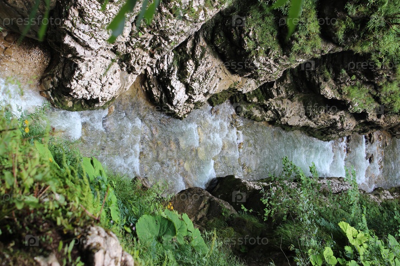 Вид на горную речку Гуамку сверху, со скалы, нависающей над нею