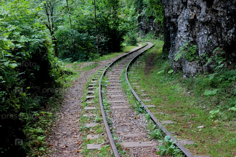 Узкоколейная железная дорога в Гуамском ущелье Апшеронского района Краснодарского края для перевозки древесины и туристов
