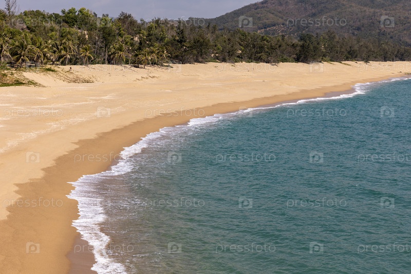 Китай. Санья. Вид на береговую зону с пляжем. Китай. Саня. Вид на прибрежную область с пляжем