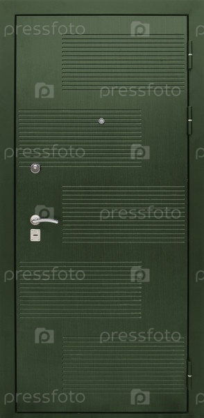 Модель входной металлической двери, изолированной на белом фоне