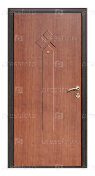 Модель входной металлической двери, изолированной на белом фоне с готовым вырезом