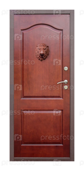 Модель входной металлической двери, изолированной на белом фоне