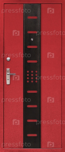 Модель входной металлической двери, изолированной на белом фоне