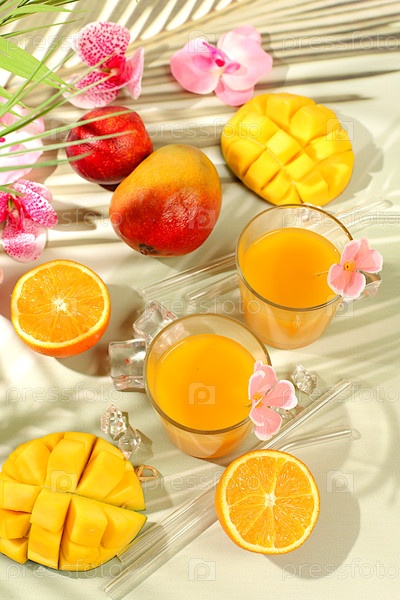 Замороженный лимонад или сок с кусочками манго, мохито с текилой, лимоном и льдом, концепция бара и вечеринки, рекламная карточка ресторана и кафе, меню ресторана, баннер для дома