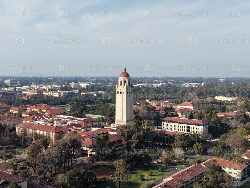 Вид с воздуха кампуса Стэнфордского университета из башни Гувера в Пало-Альто, штат Калифорния, США. g