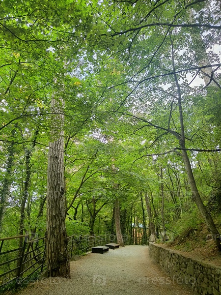 Спокойный фонаж паркового пути, пышная лесная тропа обои