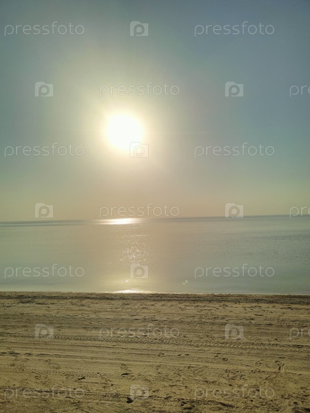Спокойный пляж при восходе солнца, спокойный океан на заднем плане, мирная летняя обои