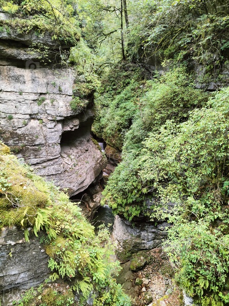 Каньон, заросший деревьями и мхом, Дикая природа на фоне, глубокий лесной обои