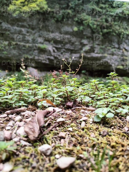 Близкий план диких растений, растущих на скалистом обрыве, подробный фон природы, обои свежего роста