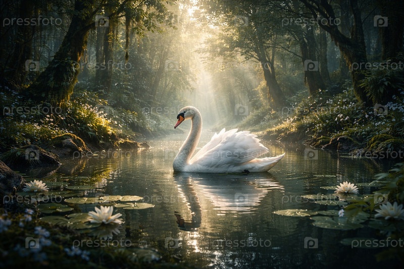 лебедь в лесу