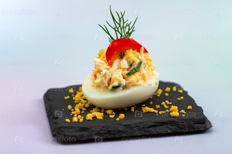 Наполненное яйцо с креветками и травами