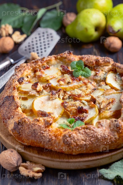 Домашний открытый пирог (галет) с грушами, синим сыром и грецкими орехами
