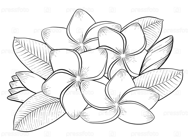 Набор иллюстраций в стиле ручной чернил тропических цветов, листьев и фруктов. для меню, косметики и упаковки продуктов питания, красочных книг и гравюрных украшений