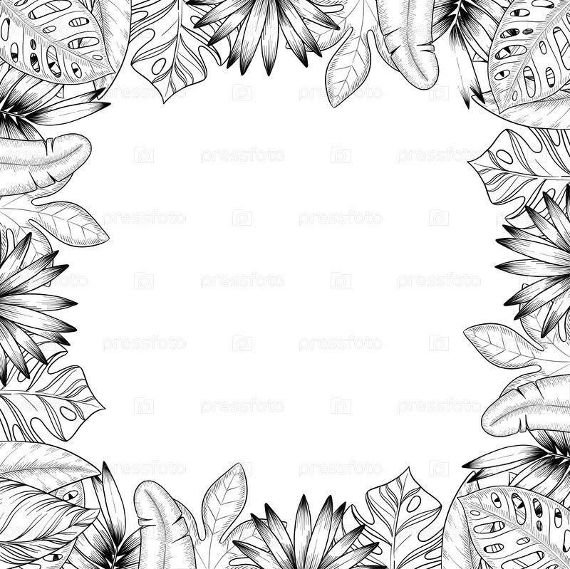 Набор иллюстраций в стиле ручной чернил тропических цветов, листьев и фруктов. для меню, косметики и упаковки продуктов питания, красочных книг и гравюрных украшений