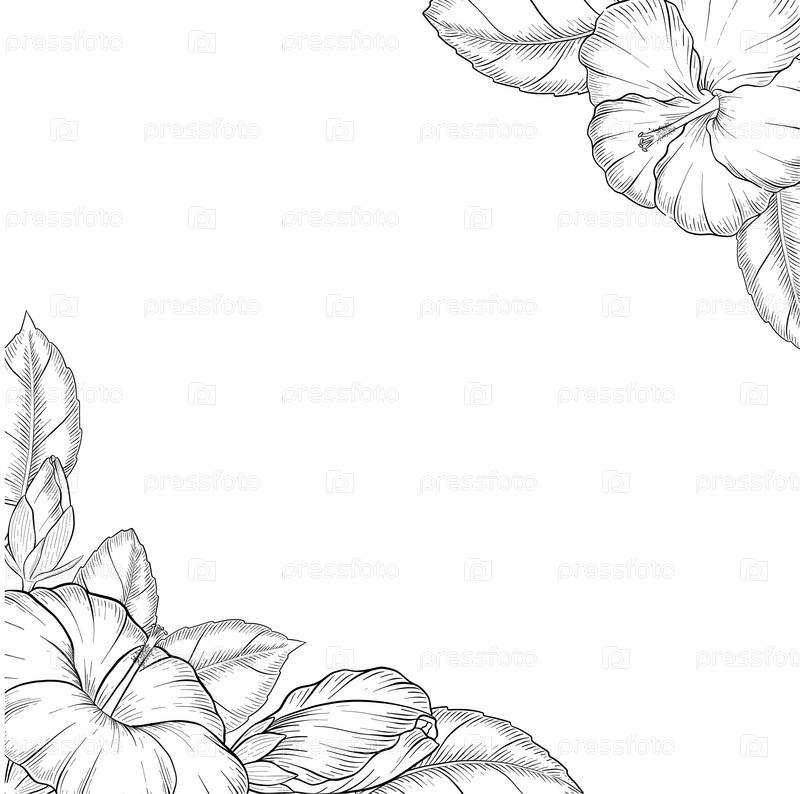 Набор иллюстраций в стиле ручной чернил тропических цветов, листьев и фруктов. для меню, косметики и упаковки продуктов питания, красочных книг и гравюрных украшений