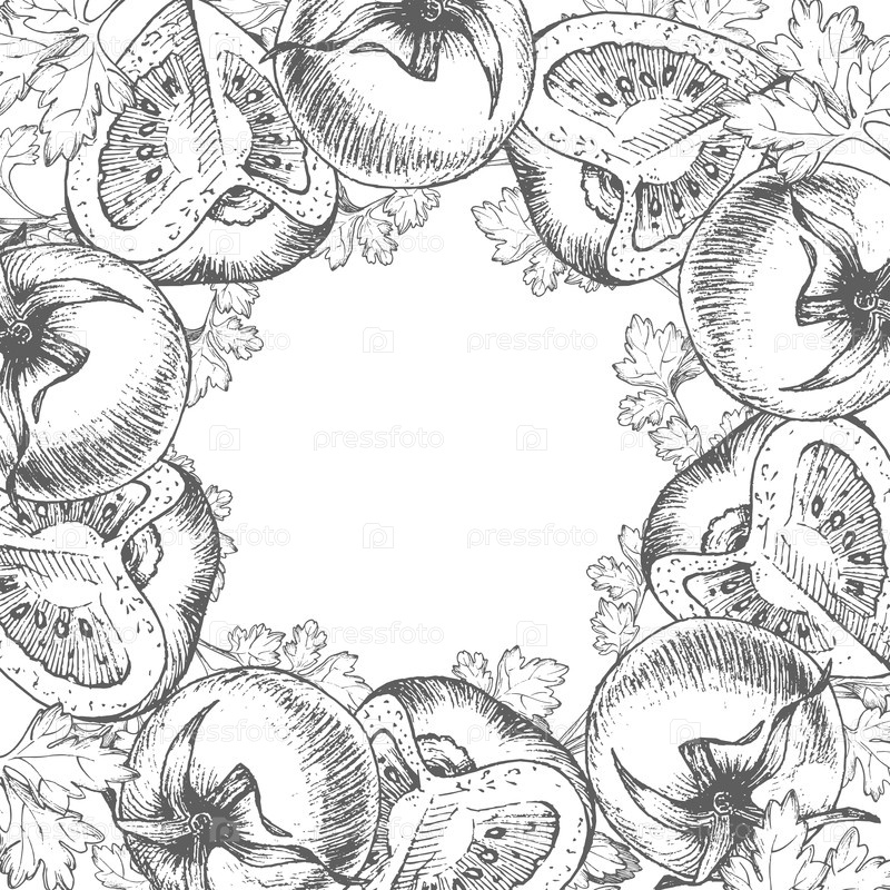 Квадратная рама петрушек и помидоров для дизайна упаковки, карточек, обложки, печати, этикеток на продуктах и ткани