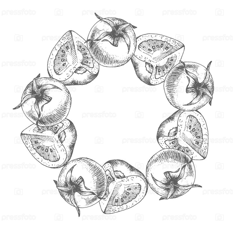 Венок помидоров для дизайна упаковки, карточек, обложки, печати, этикеток на продуктах и ткани