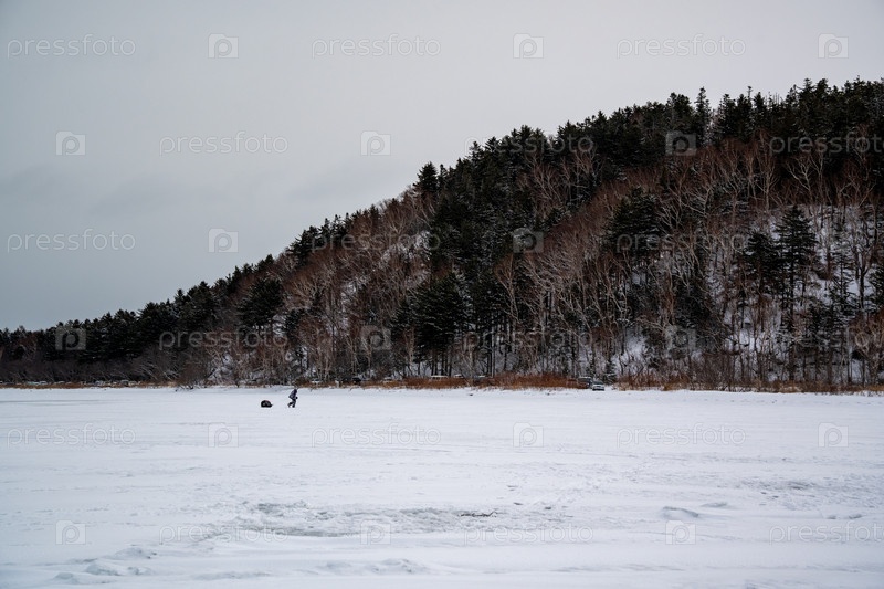 Рыбак на зимнем озере