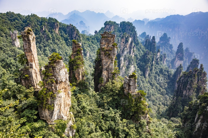 Скальные столбы и ущелье в национальном парке Чжанцзяцзе, Китай