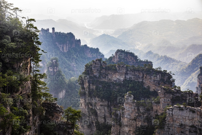 Скальные столбы и ущелье в национальном парке Чжанцзяцзе, Китай